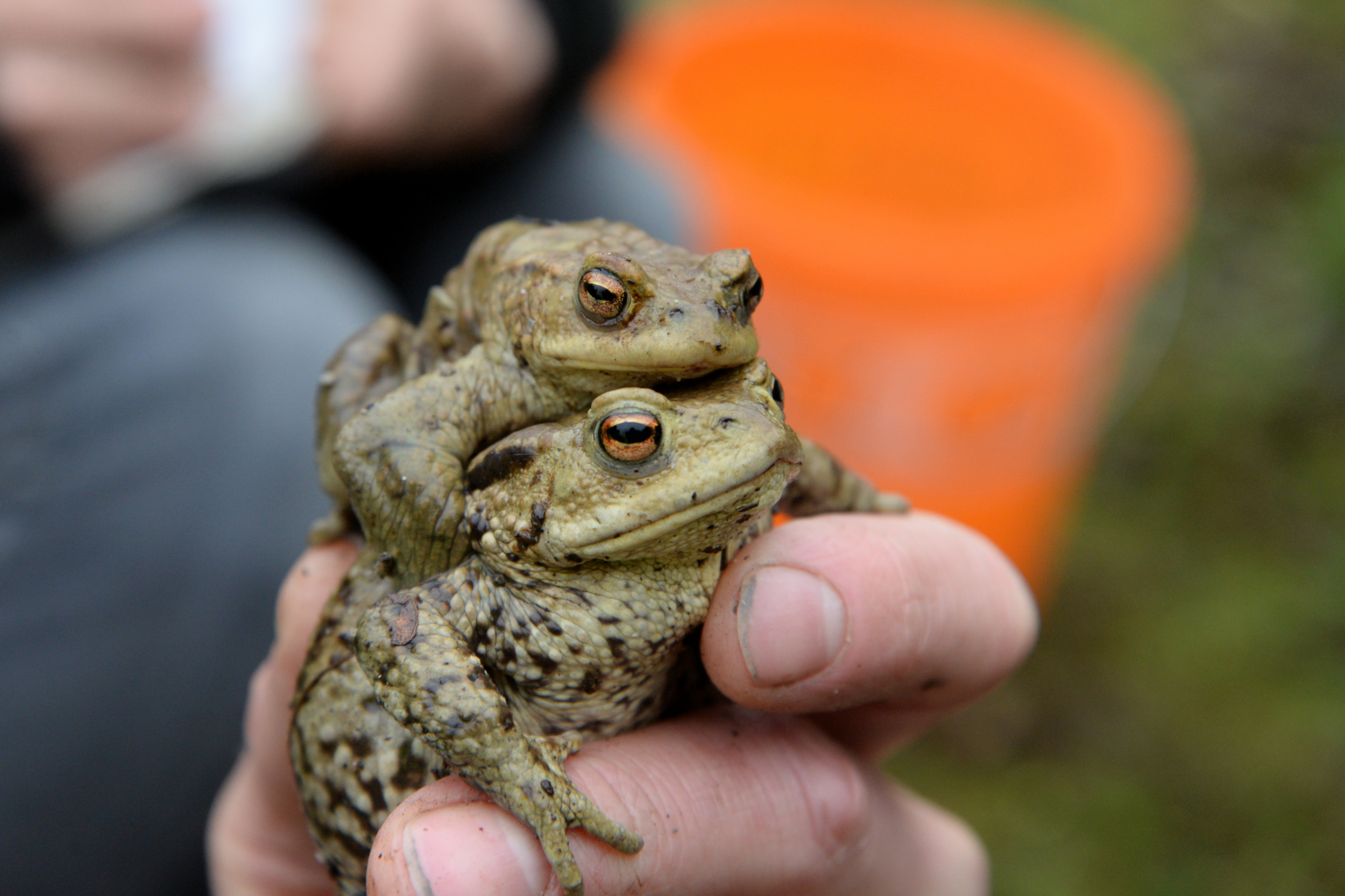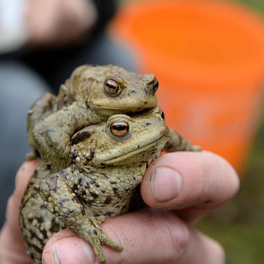 In den Bereichen mit größtem Amphibienaufkommen werden für die Zeit der Frühjahrswanderung Schutznetze in die Gullys gesetzt. Viele davon entwässern zwar in die Teiche, gerade die Laubfangeimer stellen jedoch eine Falle dar.