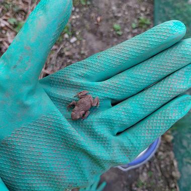Die erste Minikröte am 09.04.2024 Eimer Elberfelder Str., Neviges
